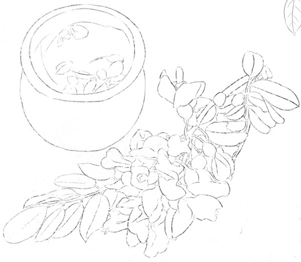 Step2:槐花的线稿比较的复杂,画的时候,可以先打一个大概的线稿,