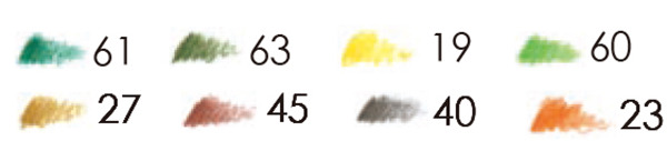 用27号黄褐色先画上淡淡的一层,再用63号橄榄绿加深暗部。