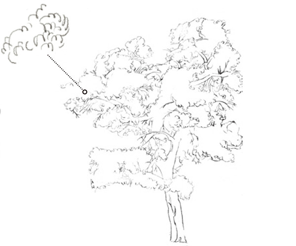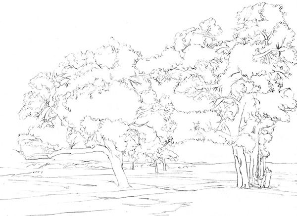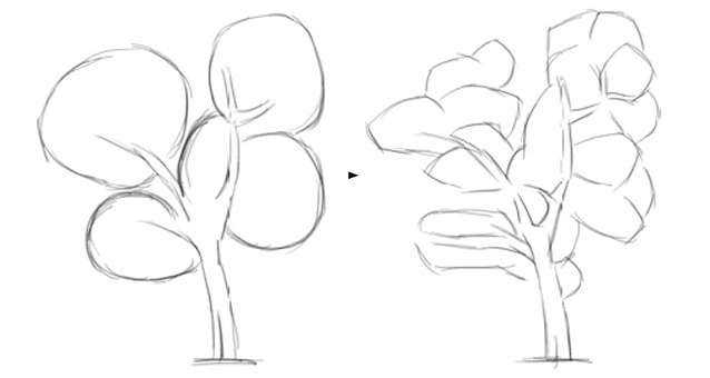 画树起型的关键在于先将树的主要树干和树叶进行分区,然后在此基础上逐渐细化,直至将树叶的轮廓体现出树叶的质感。