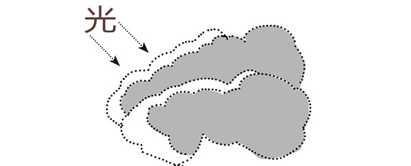 中黄的部分是受光的树叶,橙色的部分是背光的暗部。