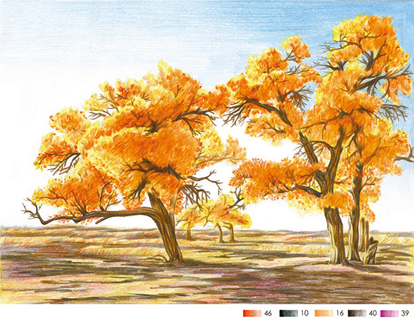胡杨林是生长于大漠上的神奇植物,绚丽的色彩和特殊的质感都很值得拿起画笔!