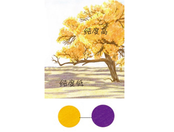 远处和近处的树相比,色彩明度更高、纯度稍低,
