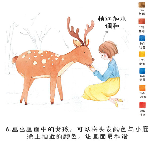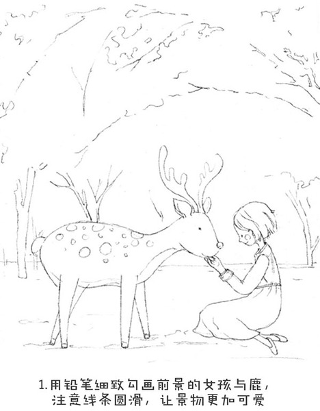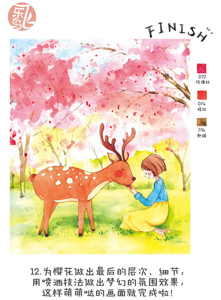 是樱花树下的小鹿?还是短发的红脸蛋女孩?或是跟着我画完这幅画的你?