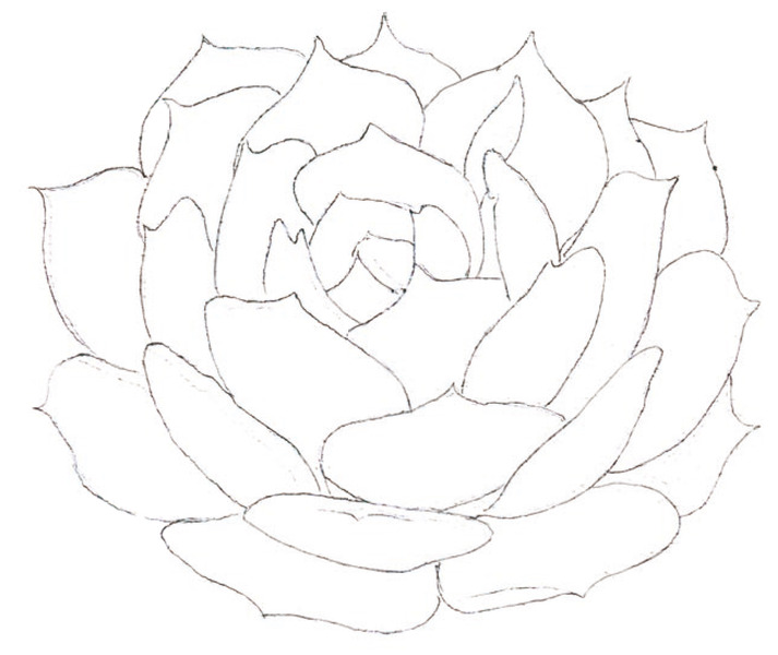 多肉的叶瓣层次很丰富,在画线稿的时候,先将层数理清,再刻画形状。