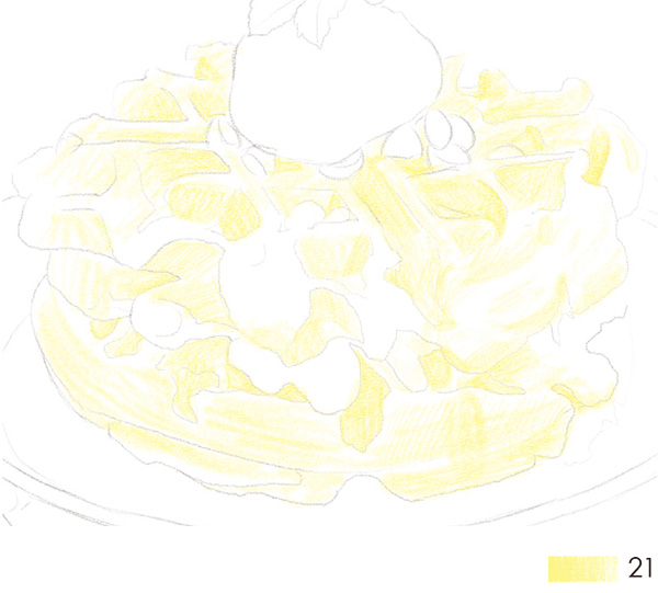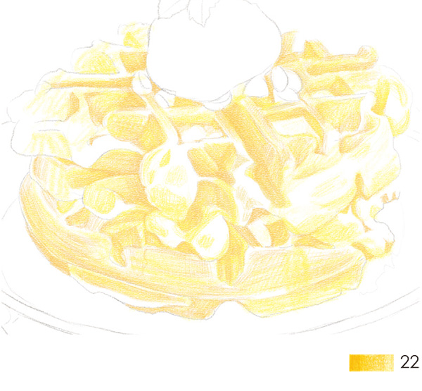 Step1:首先给画面的主体华夫饼上色。先用21号浅黄色大致涂出华夫饼的底色,
