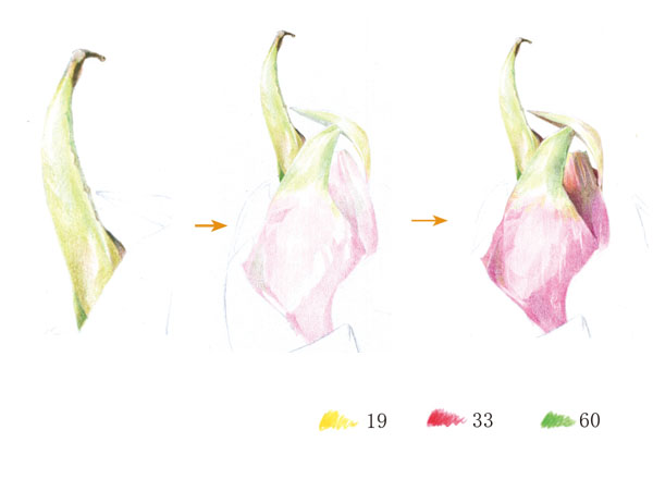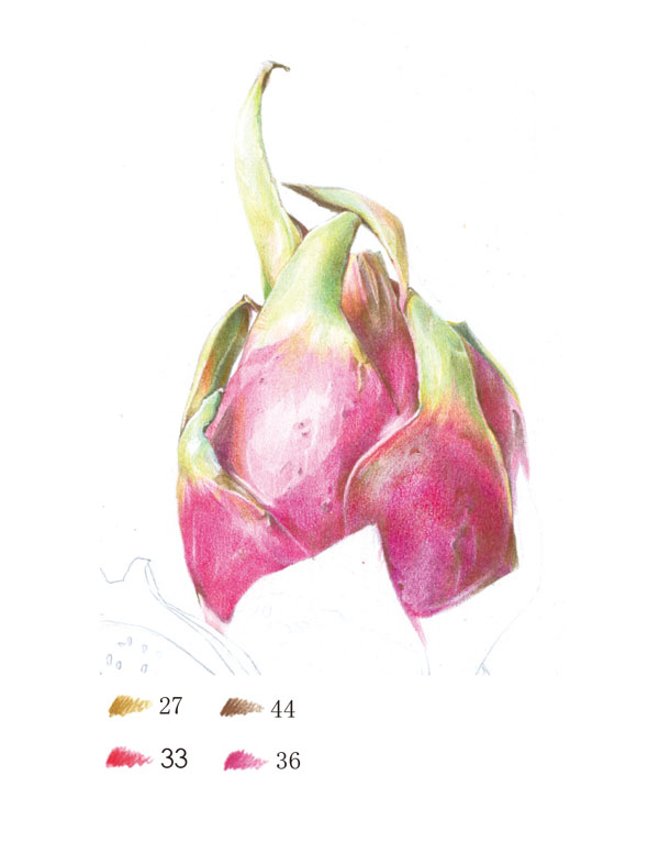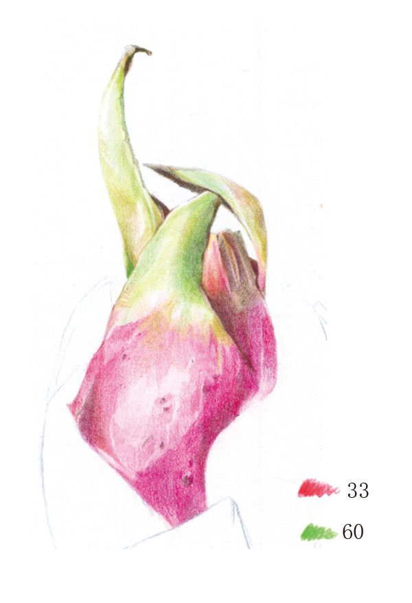 用33号淡红色加深外皮的颜色,注意区分明暗关系。