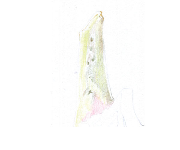 Step2:将外皮一片一片地画出来,果皮尖用60号草绿色铺上底色,