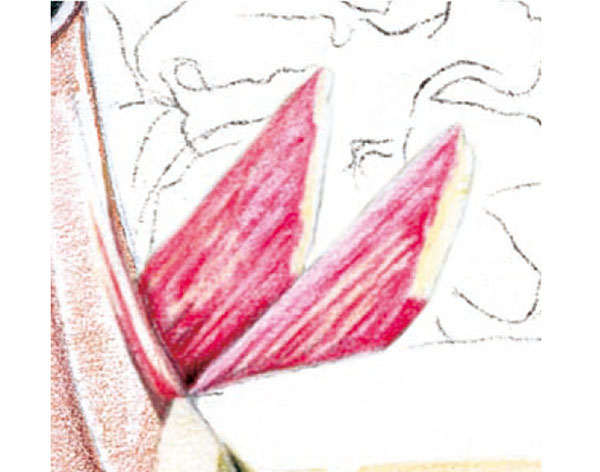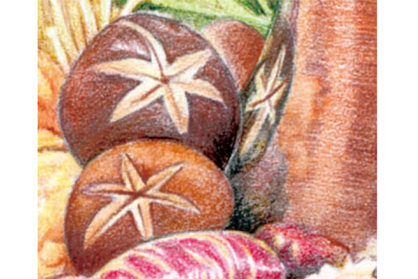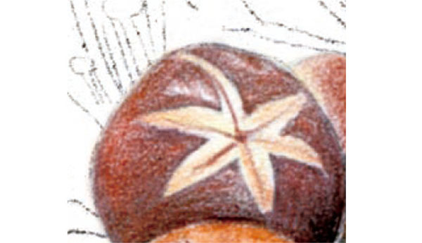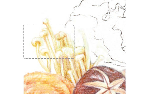 STEP10:金针菇的颜色很浅。先用22号桔黄淡淡地铺色。然后用27号黄褐色画轮廓线,要有粗细变化。