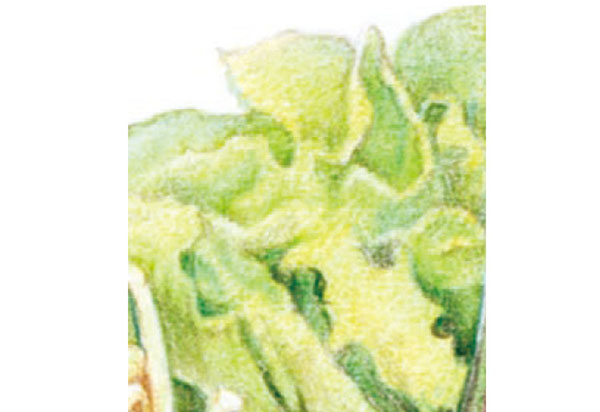 STEP11:后面的白菜叶子用60号草绿来画亮部。用61号深绿和10号黑色来画重色。