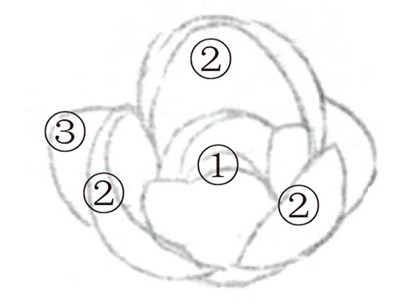 STEP2:腊梅花要从花朵的中心往外画,再一层层添加花瓣。