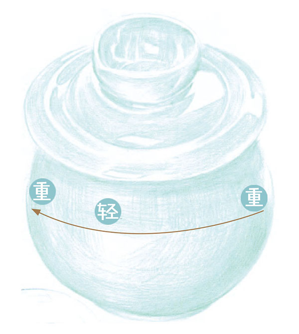 壶口明暗关系一定要描绘正确,光源在左上方,