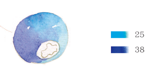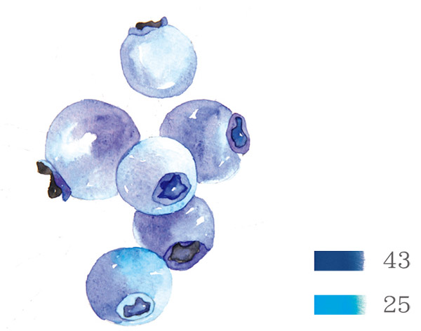 STEP1:首先,我们先用天蓝色加入多一点水分将蓝莓的亮部平涂出来,