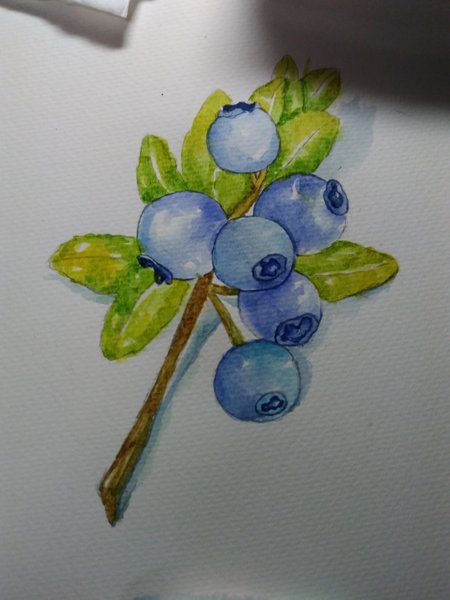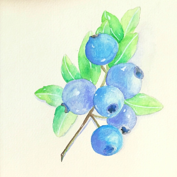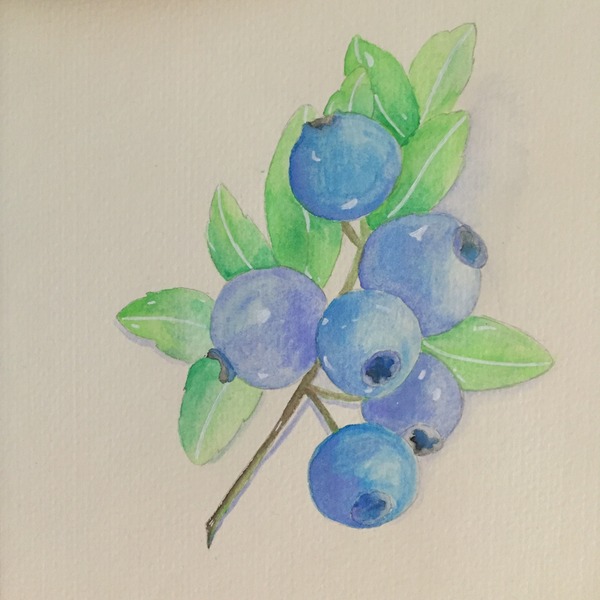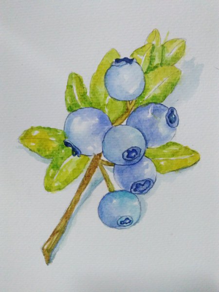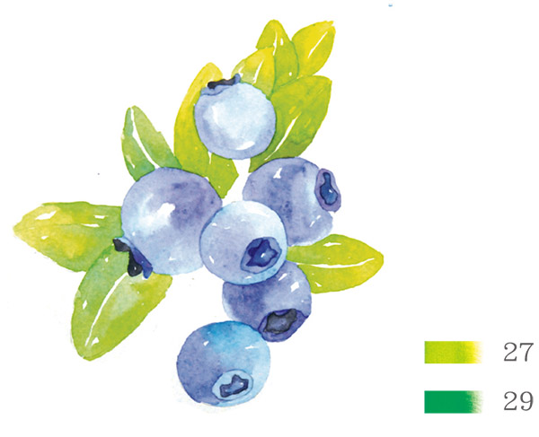 将蓝莓果实剩下的部分平涂出颜色,注意要控制水量。
