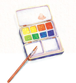 只要有一杯一盒陪伴你画画的水彩颜料清水和一支画笔搭配,就可以开始画画了。