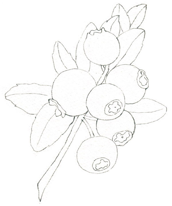按照前面的结构分析方法,就能很容易地画出蓝莓的基本线稿啦!