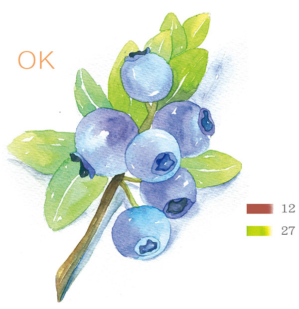 在平涂时,可以适当留白一些位置,表现出蓝莓本身的质感。