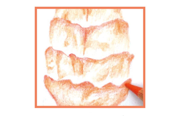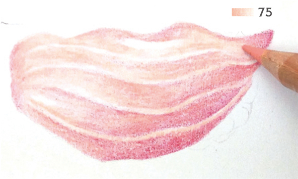 从虾肉每一层的边缘开始加深,轻轻画出渐变色。
