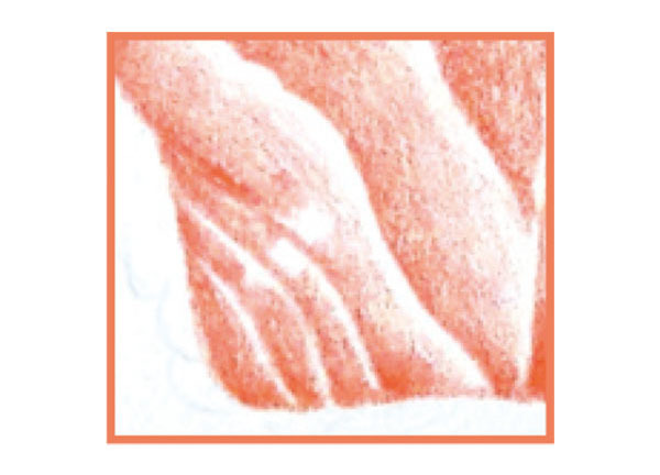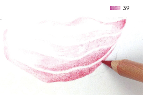 先用39号紫红色描画金枪鱼片深色的纹理,注意画出渐变色,保留出白色的条纹。