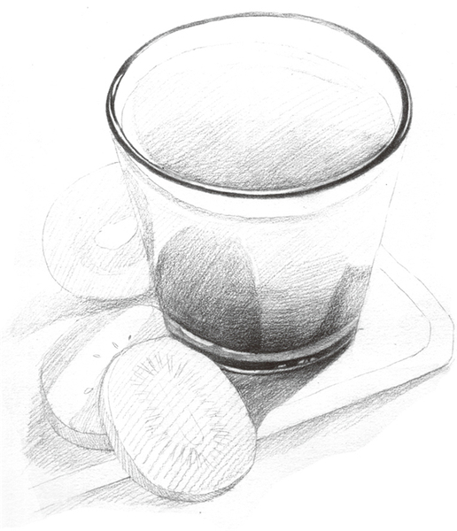 STEP1:构图时先用HB铅笔简单地描绘玻璃杯的形状,