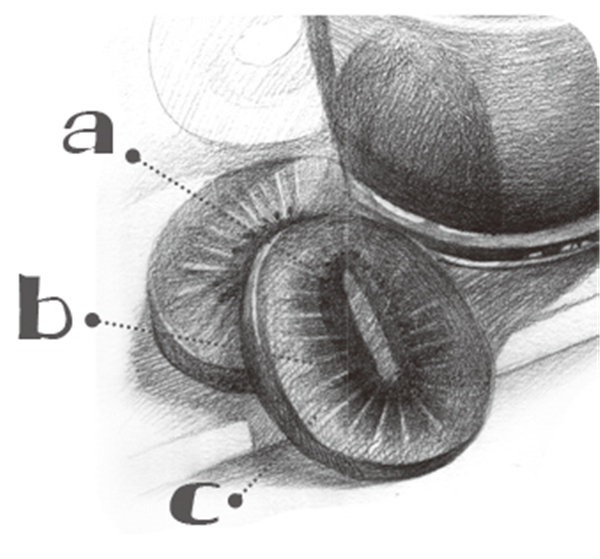 猕猴桃的颜色由内向外呈渐变层次,a处是颜色最深的部位,